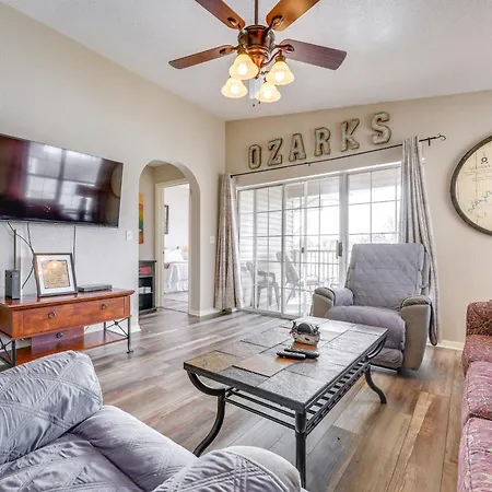 Cozinha totalmente equipada do Lovely Branson Condo On-Site Golf And Fishing inclui forno, fogão e máquina de lavar loiça. O apartamento fica a 26 minutos de carro do aeroporto de Branson. Há piscina para o relaxamento dos hóspedes.